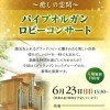 2013年6月23日(日)パイプオルガンコンサート♪パイプオルガンロビーコンサート 広島サンプラザ恒例のパイプオルガンロビーコンサート!! 今回は《ブリランテ》という豪華5人グループの演奏です☆ 2013年6月23日(日) 13:30~ グランドロビーにて…2013/06/06